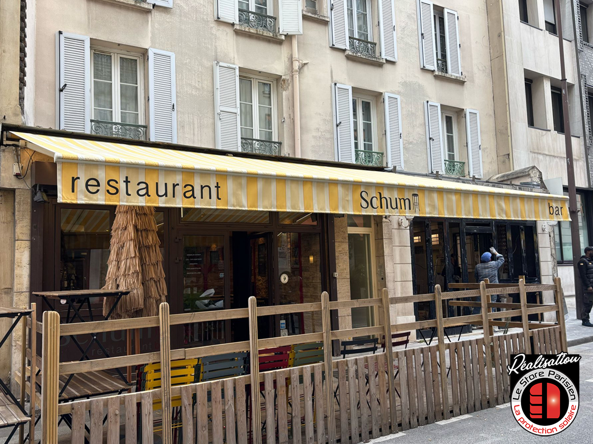 Toile Latim sur mesure. Store droit tombant sur le côté.
