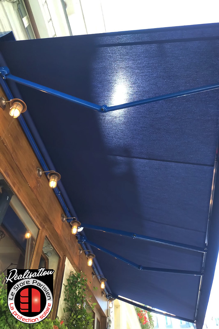 La banne monobloc : son tube carré porteur de 40 mm permet de multiplier les supports (pour renforcer la fixation) et les bras (pour une meilleure tension). Ce store permet de très grandes dimensions (12 × 4 m). Possibilité d’un auvent de protection en aluminium (casquette) ainsi qu'une personnalisation (marquage de textes et logo ou lambrequin lumineux ).