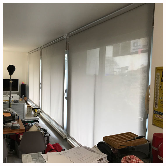 Réalisation d'un store à bandes verticales chez un particulier à Montfort l'Amaury dans les Yvelines.